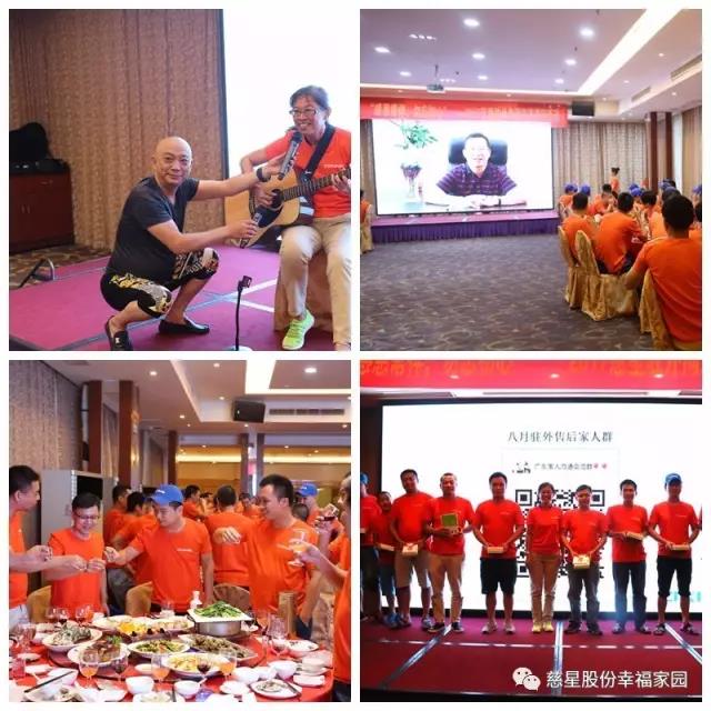 8月17日晚上6点,88名广东站家人欢聚一堂,共同庆生。广东代理商朱建民在活动中讲到:“作为代理商,非常感谢广东驻外家人的付出。慈星拥有你们,是最大的财富。大家多半都是进入公司8年、9年甚至10年以上的前辈了, 你们见证了公司发展奋斗的历程。让我们共同努力,不忘初心。在孙董的领导和支持下,在广东驻点负责人白爱东的带领下,在驻外家人的共同努力下,在代理商的支持和配合下,将慈星打造成全国最大的品牌。”