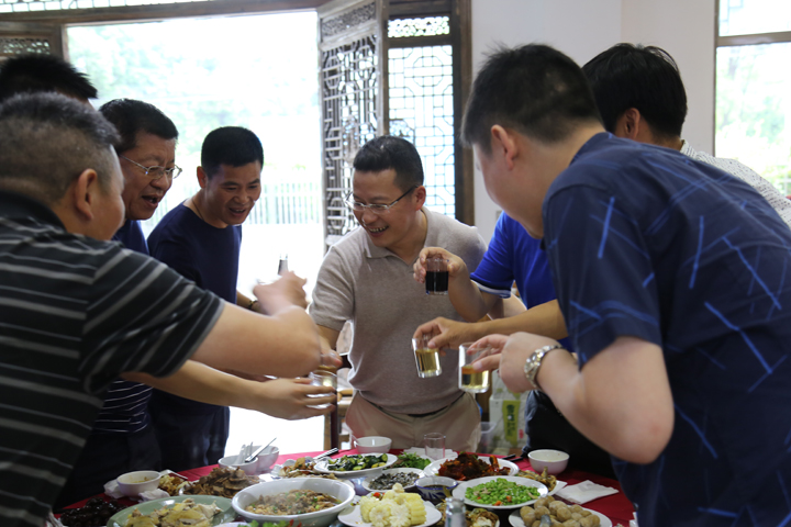 三个小时的采摘结束了,这时候适宜在农家山庄小憩一会,等待我们的是鲜美可口的农家菜肴。大家长孙董也与家人们一一碰杯,感谢大家平日工作的辛苦和付出。“慈爱善星、以人为本、创福于人”是我们的企业文化,让我们心手相携,共建慈星幸福家园。