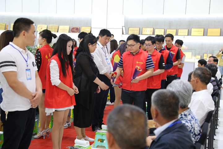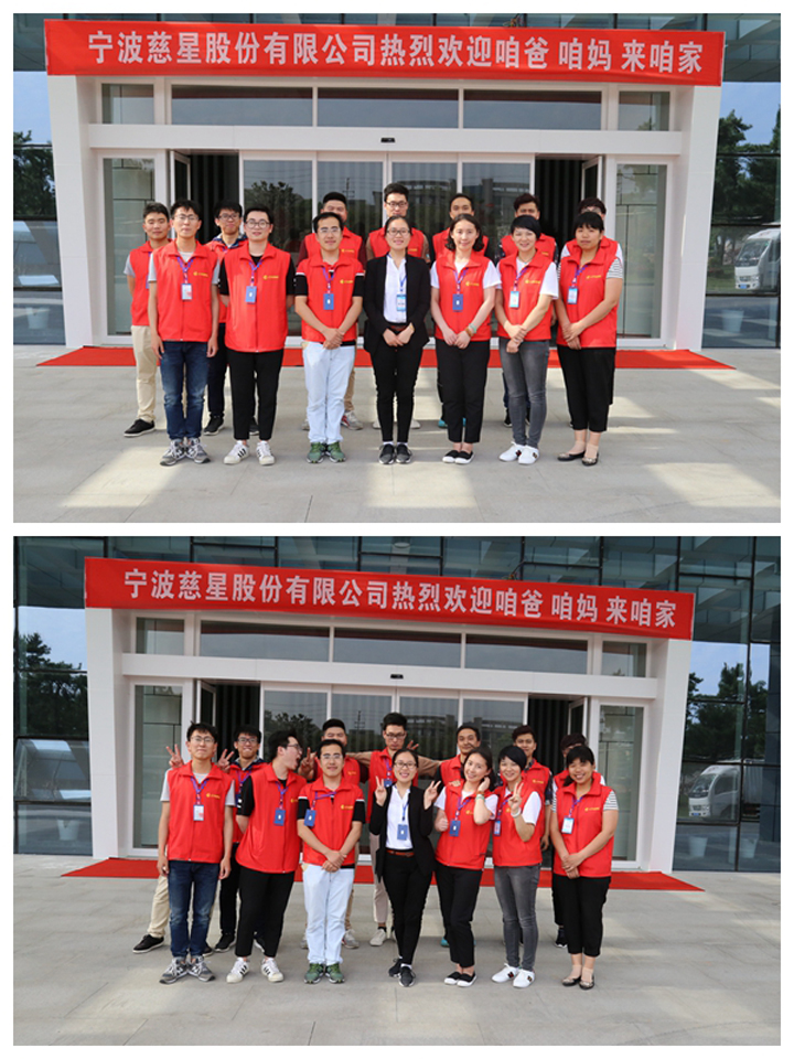 5月18日,大巴载着远道而来的父母到达公司,红毯铺地,慈星志工团队早早得在公司大厅门口鞠躬相迎,父母脸上都洋溢着幸福的微笑。
