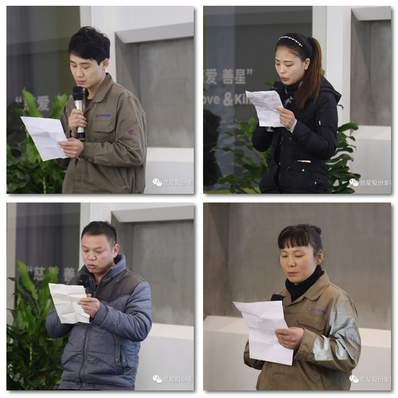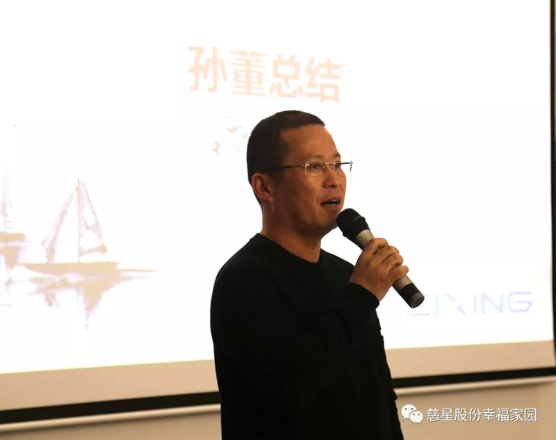 大家长孙董做了最后的总结:慈星是我们的家;我们是慈星的家人;我们的父母也是慈星的父母。慈星是我们梦想的地方,未来的慈星是靠每一位慈星的家人,“慈爱善星”是我们永远的大家庭。