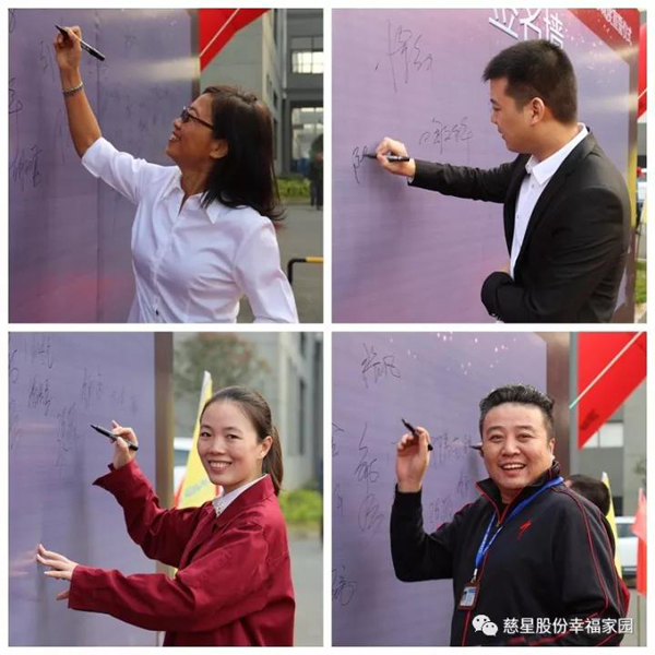 各位家人,我希望大家能够主动参与到企业建设中来,建设我们良好的企业文化,形成积极向上、心手相携的企业氛围,以良好的精神面貌投入到企业大家庭的工作中。慈星也会关注和回报每位家人的付出,尽全力为家人解决后顾之忧;为家人提供事业和生活的良好平台;为企业赢得更多的社会认可,并回报家人、回报社会。最后,我祝大家工作更上一层楼,祝各位家人身体健康、万事如意!