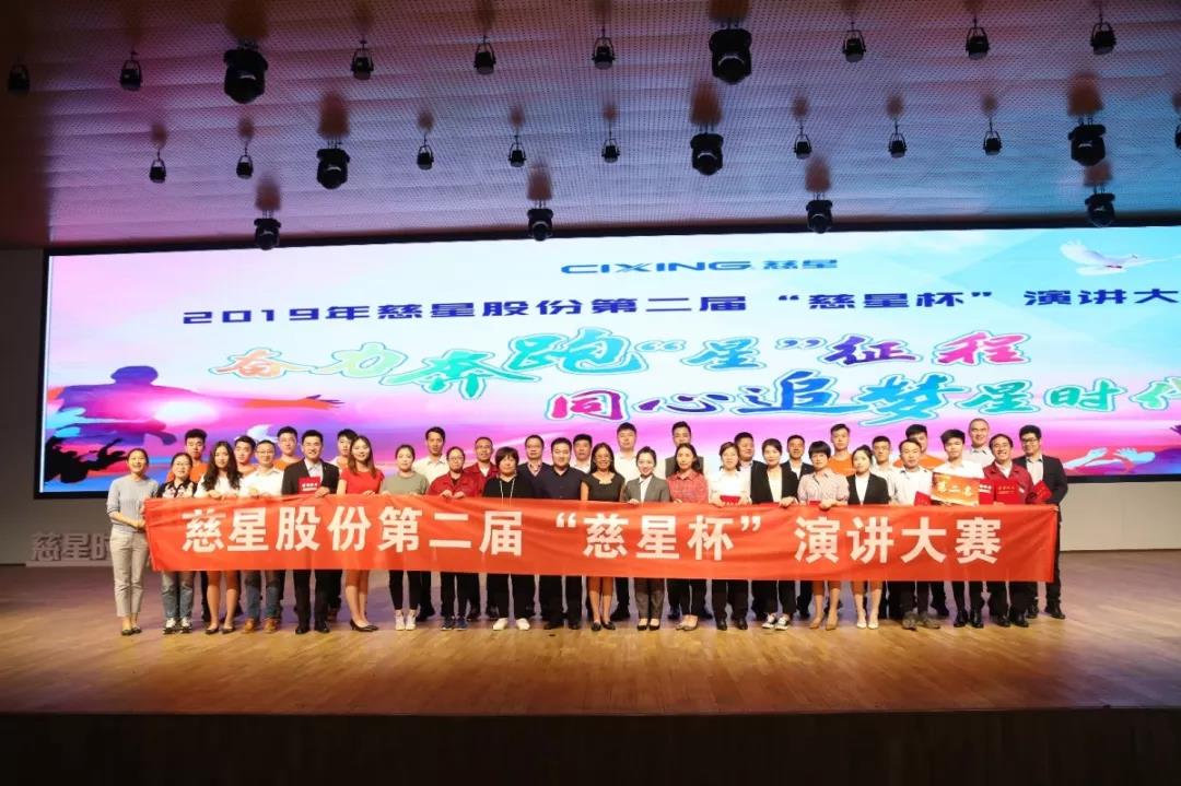 在激情洋溢的歌声中,慈星股份第二届“慈星杯”演讲大赛圆满落幕,这场演讲大赛为公司五星文化的深入推进奠定了良好的基础。2019年是全员追逐慈星梦年,全体慈星家人将不断进步,超越自我,主动担负起企业发展的使命,共同努力拼搏,共创慈星美好未来!