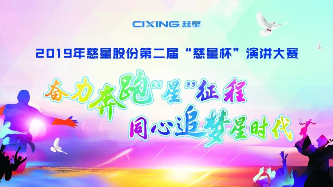 2019年是慈星“星”智造年,大家长孙董提出了五星理念:星时代、星精进、星智造、星服务、星梦想,全公司围绕五星进行工作的开展。为了充分展示慈星家人的活力风采和时代风貌,并激发慈星家人积极投身公司“五星”的文化建设,使其更加深入人心,公司特举办“奋力奔跑星征程,同心追梦星时代”,慈星股份第二届“慈星杯”演讲大赛,慈星家人们踊跃报名参加,认真准备,2019年4月24日下午在公司四楼多功能厅如期举办。