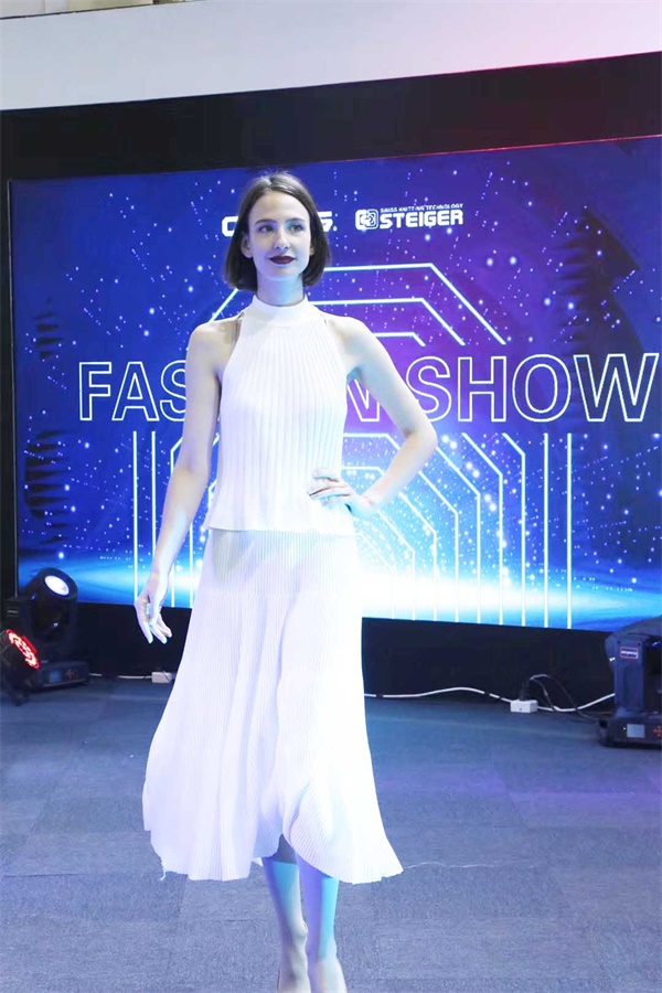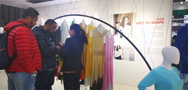 展会期间,慈星股份除了展示令人惊艳的创新产品外,大气美观、极具时尚感的展会设计吸引了大批客户前来观展。开展首日,慈星KNIT TO SHAPE针织发布走秀更让在场观众大饱眼福。靓丽的模特身穿有慈星股份KNIT TO SHAPE一线电脑横机编织的连衣裙、外套、长裤无一不透露出舒适时尚、舒适的气息;高领、V领、圆领,每一件都匠心独具,现代摩登;嵌花、衬纬、镂空等特殊组织花型无不显示了慈星电脑横机编织技术的高超前沿。