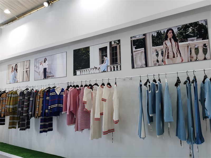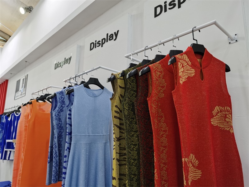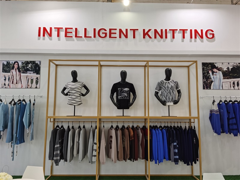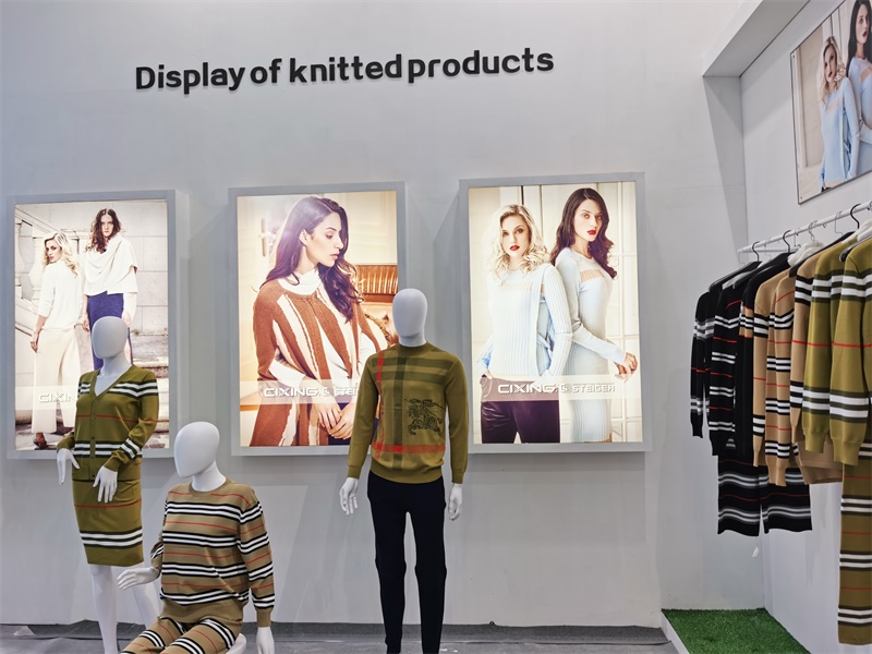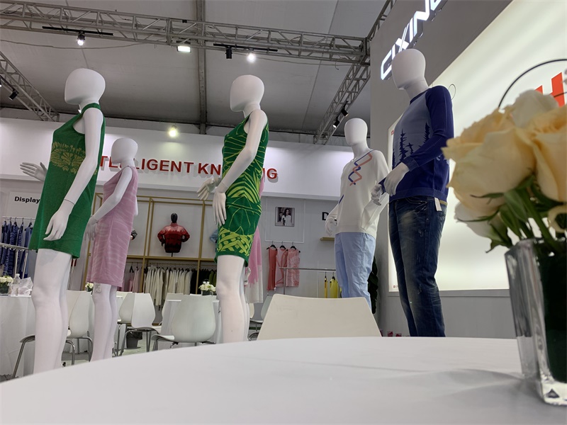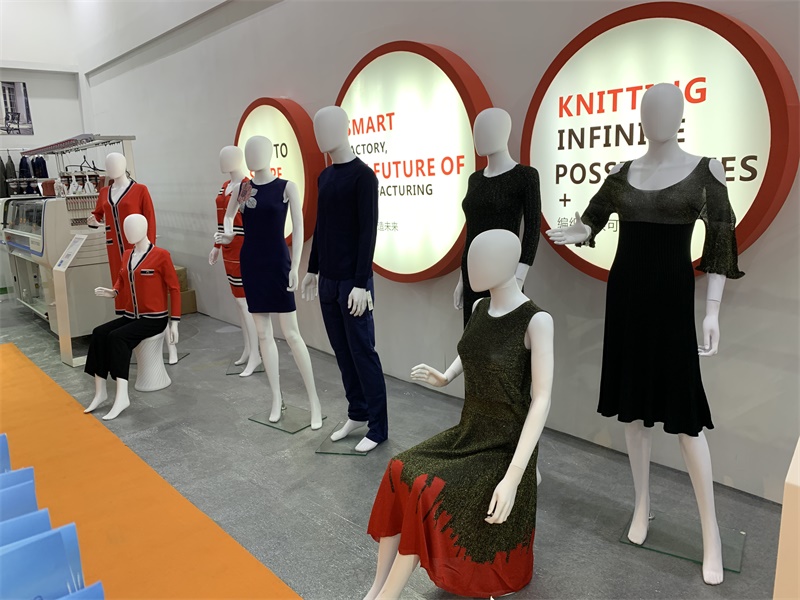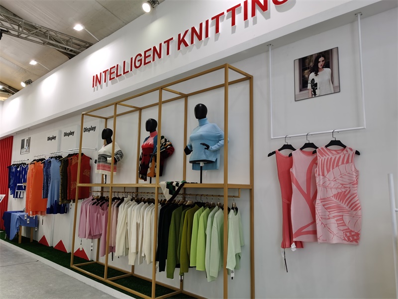 在本次展会中最亮的莫过于由慈星股份KNIT TO SHAPE一线电脑横机编织的各种流行款式的针织服装,吸引了众多观众的眼球。琳琅满目的针织服饰包括连衣裙、针织旗袍、套装、短袖、外套、裙子、裙子无一不透露出舒适时尚、舒适的气息;高领、V领、圆领,一字领每一件都匠心独具,现代摩登;嵌花、衬纬、镂空等特殊组织花型无不显示了慈星电脑横机编织技术的高超前沿,引领针织行业时尚潮流趋势。