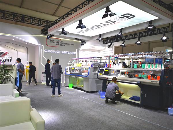同时,由慈星股份一线成型鞋面机生产的代表行业设计领先趋势的一批一线成型针织鞋面及成鞋运动服饰也在针织展区展出,展出的一线成型的电脑横机采用了先进设备和智能制版工艺,生产编织出来的这些针织鞋服饰无论从款式、品质、脚感等方面均有了很大的提升,而且花样、颜色多变,造型美观吸引众多客商眼球。