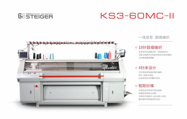 KS3-60MC-III机型拥有全球领先的超细18针一线成型技术,可最大限度的实现各种复杂花型的编织,让织物更顺滑细腻。