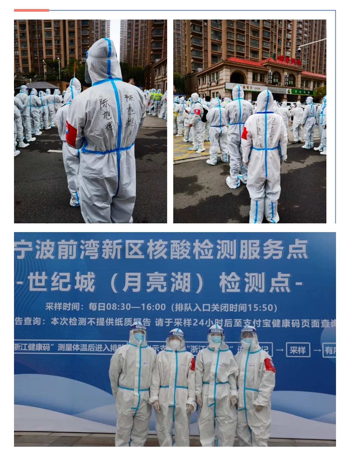 因为工作日企业还有生产任务,除了晚上和周末,大家参与防疫志愿活动时间非常有限。上周四看到新一轮招募通知慈星党总支马上在群里发出招募信息,号召党员带头参与,短短五分钟便成功招募到周日当天需要的核酸检测站点8名志愿者。慈星人又再一次集结参与防疫志愿活动,哪里有需要,我们便即刻启程奔赴。