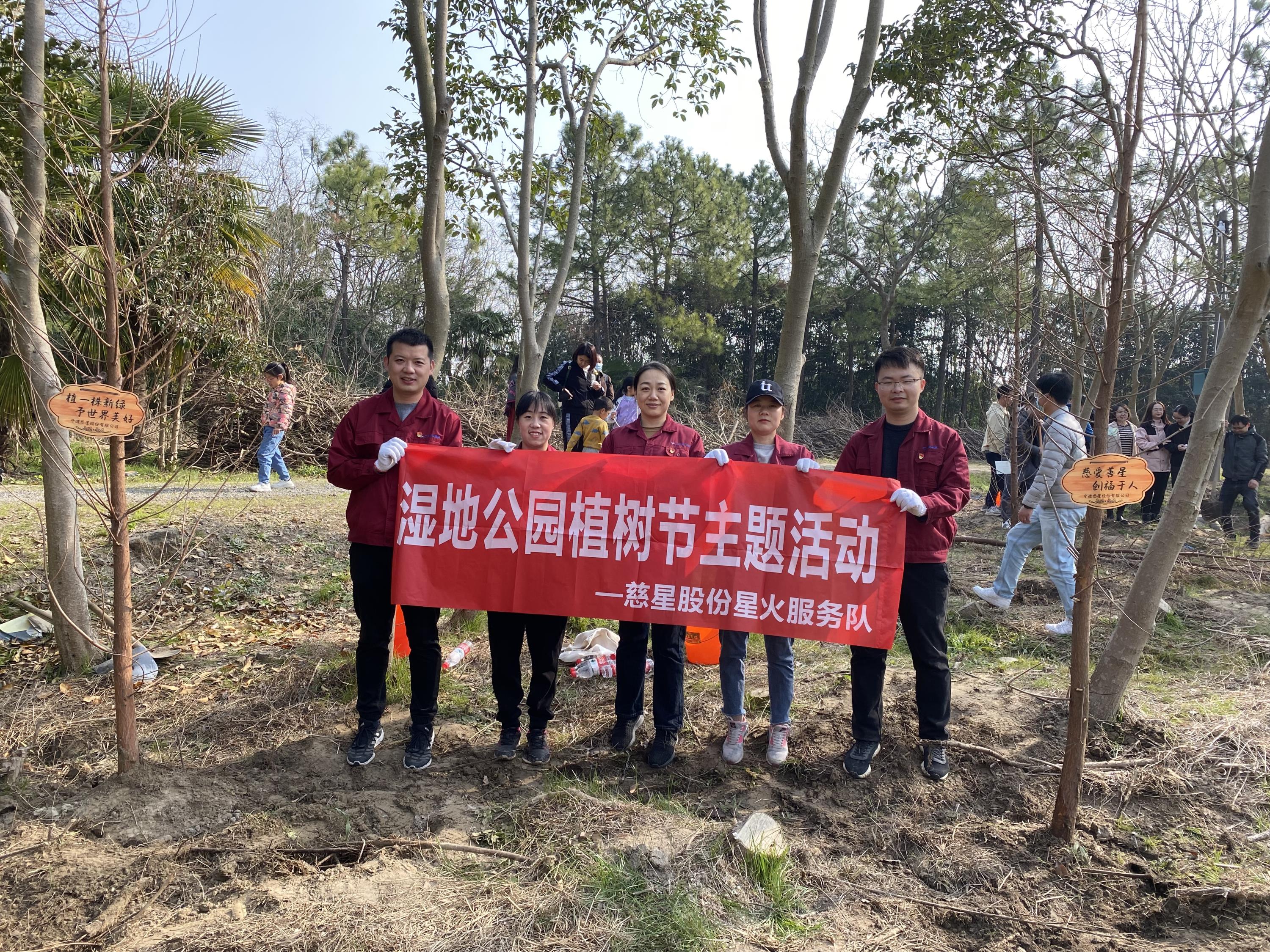 每一片新绿,都让世界多一份美丽。为迎接第45个植树节到来,慈星股份党总支深入贯彻落实习近平生态文明思想,积极践行“绿水青山就是金山银山”的发展理念,参加了前湾新区团工委、新区志愿者协会和宁波杭州湾国家湿地公园、彩虹湾社会工作服务中心等单位联合举行的湿地公园植树节主题活动。经过扶苗培土、拎桶浇水,党总支代表们亲手种下两棵树并挂上了“慈爱善星、创福于人”,“植一株新绿 予世界美好”的许愿牌。