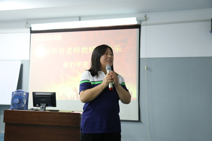总经理助理孙田力田姐为每位老师送上了节日的祝福:很荣幸代表公司和我们的大家长孙董为每一位老师送上祝福,在这里祝愿我们所有的老师节日快乐!感谢您们一直以来默默的在这个岗位上的付出,为公司和客户培养和输送了一批批优秀的学员,值此教师节来临之际祝愿所有的老师节日快乐,你们辛苦了!