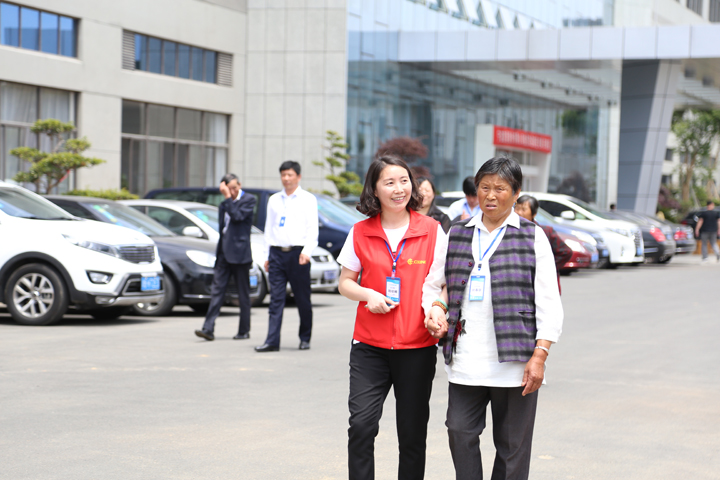 5月18日,大巴载着远道而来的父母到达公司,红毯铺地,慈星志工团队早早得在公司大厅门口鞠躬相迎,父母脸上都洋溢着幸福的微笑。